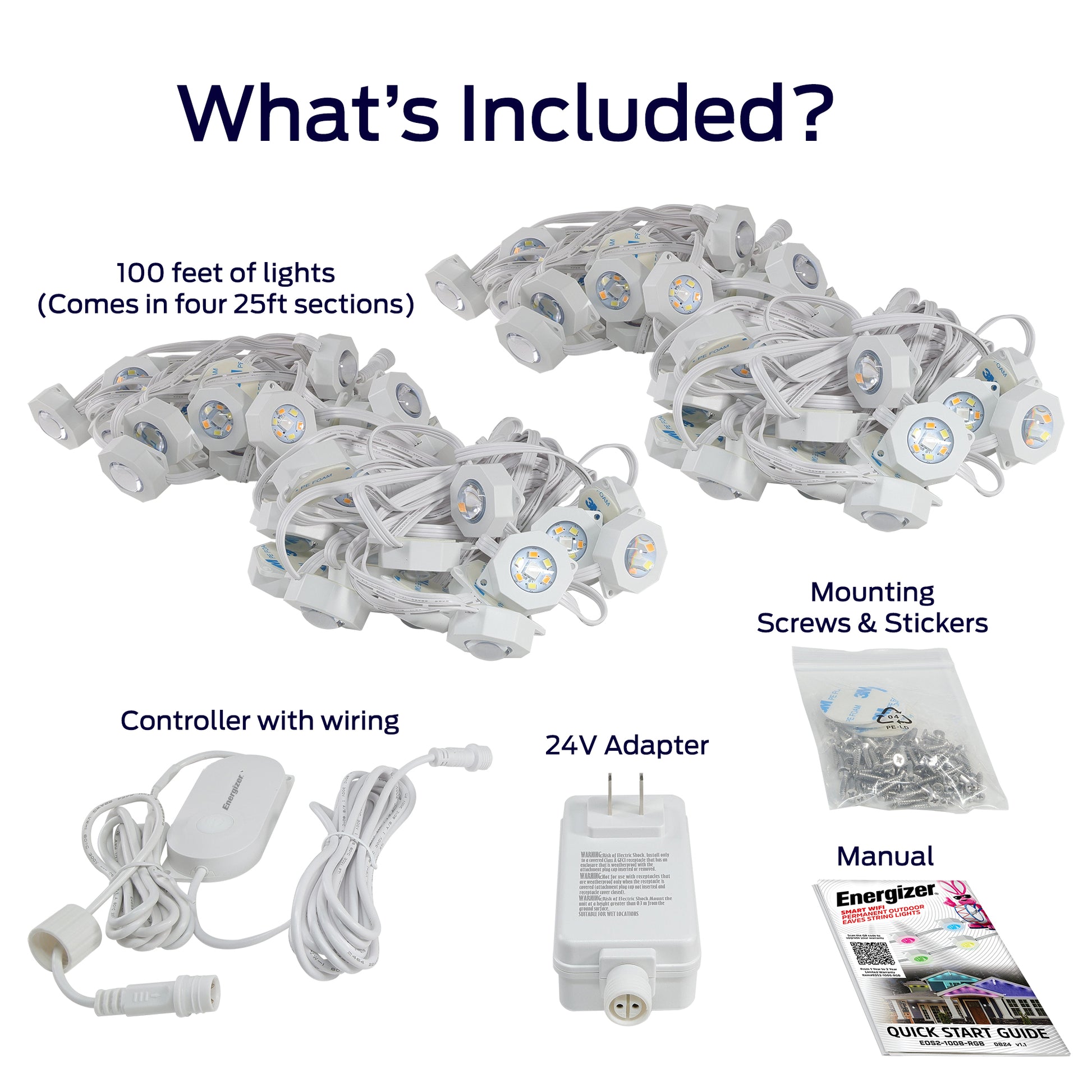 - Make your day easier with schedules and scenes: With the Energizer® Connect app, you can group multiple strings of eaves lights together and set schedules and scenes that enhance your day-to-day routines. Schedule your lights to turn off in the morning, set a timer when you’re at work, or create a party scene that switches your lights to a fun, multicolor ambiance when guests are coming over. The choices are endless!