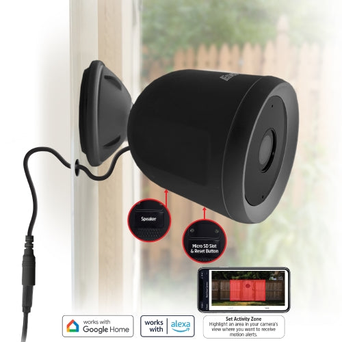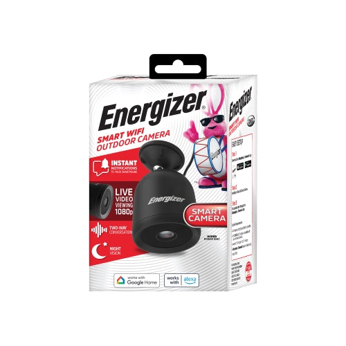 Whether you want to secure your property, monitor children and pets, or communicate with visitors, the Energizer® Smart WiFi Outdoor HD Camera will deliver what you need. The IP65 weather-resistant camera is easy to install and connects seamlessly to your existing 2.4GHz WiFi without the hassle of costly hubs, complicated setups, or subscriptions. View the video livestream in crystal-clear, 1080P Full HD with infrared night vision and a 100° viewing lens. Instant motion alerts tell you if the camera detects movement, and you can use the 2-way audio feature to speak to anyone on camera. Connect your device to Alexa or Google Home for easy voice control and download the Energizer® Connect app to view live streams and recordings from anywhere. If you want an outdoor home security camera that's smart and reliable, then take advantage of the Energizer® Smart WiFi Outdoor HD Camera and start recording today.