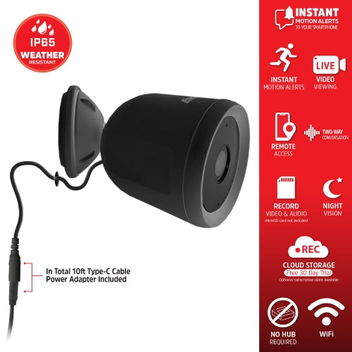 - Designed for convenience: Enjoy a weather-resistant camera with an IP65 rating to withstand rain, snow, dust, and other outdoor elements. Bullet design blends in seamlessly with the home and is simple to install and adjust.