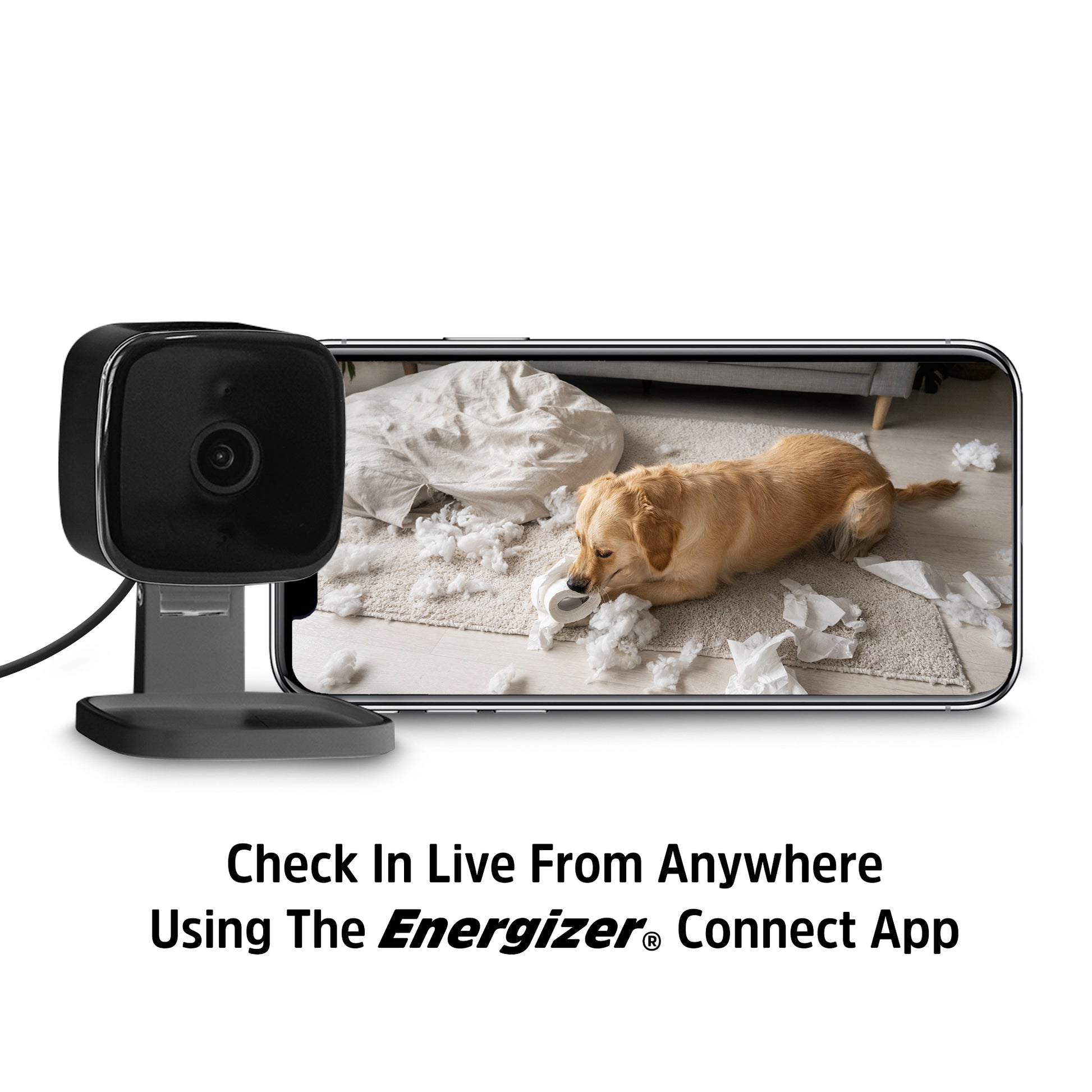- Control your camera from anywhere: Download the Energizer® Connect app to view your live video, access your footage, operate the camera remotely, and set up multi-camera viewing. Stay on top of your home security no matter where you are for the ultimate peace of mind.