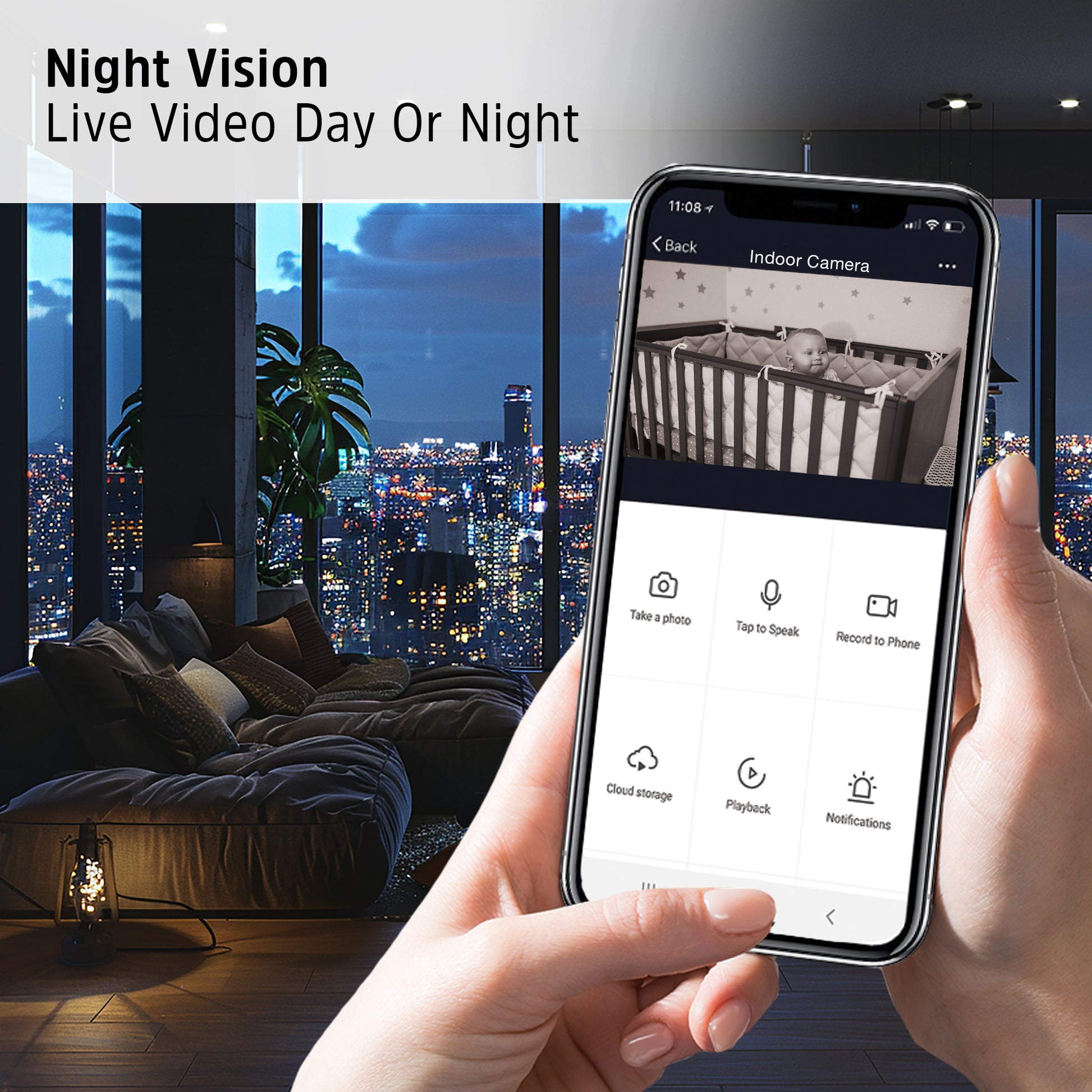 - View every detail of your living space: The camera records in 1080P Full HD resolution with a 95° field of view. Built-in night vision gives you a crisp, detailed overview of your space even in dark conditions, so you always know what’s happening on the other side of the camera.