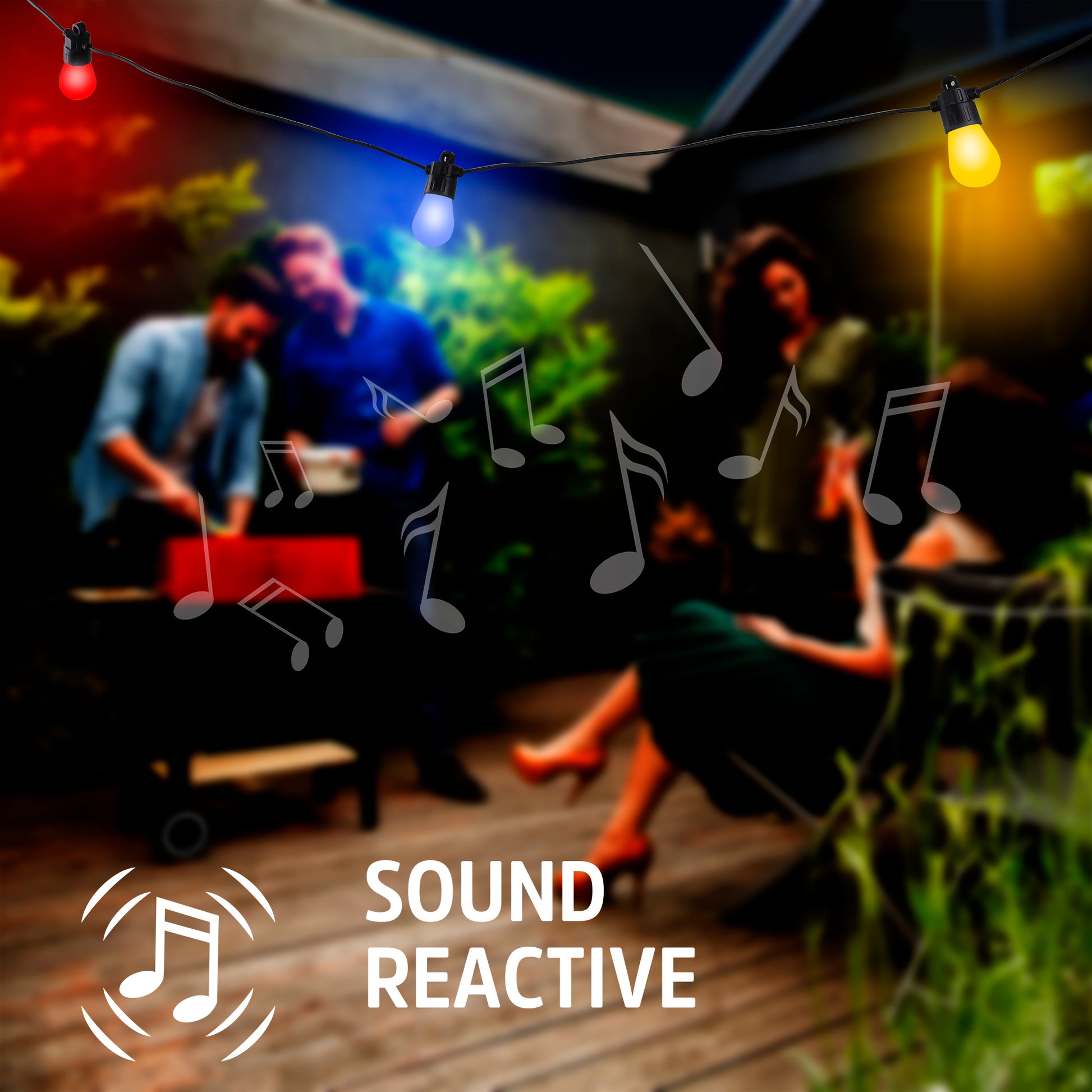 - Sync your lighting to your music and media: The string lights feature a built-in microphone that detects your music and media to create dynamic, sound-reactive lighting effects. Enhance your outdoor entertainment area with lighting that pulses to match whatever you are listening to or watching for a truly immersive experience.