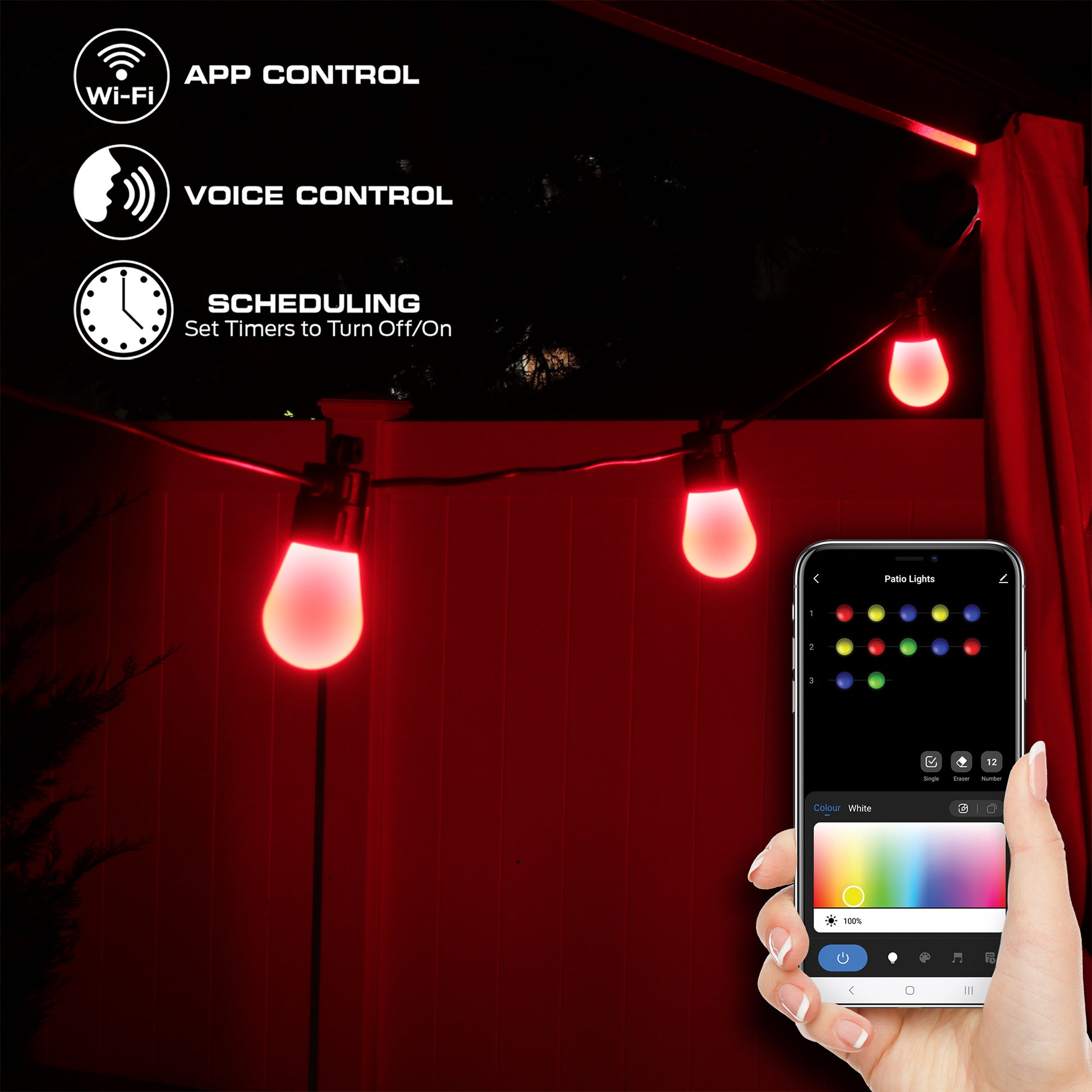 Smart 24ft Outdoor Multi-Color & Multi-White Sound Reactive String LED Lights Bulbs