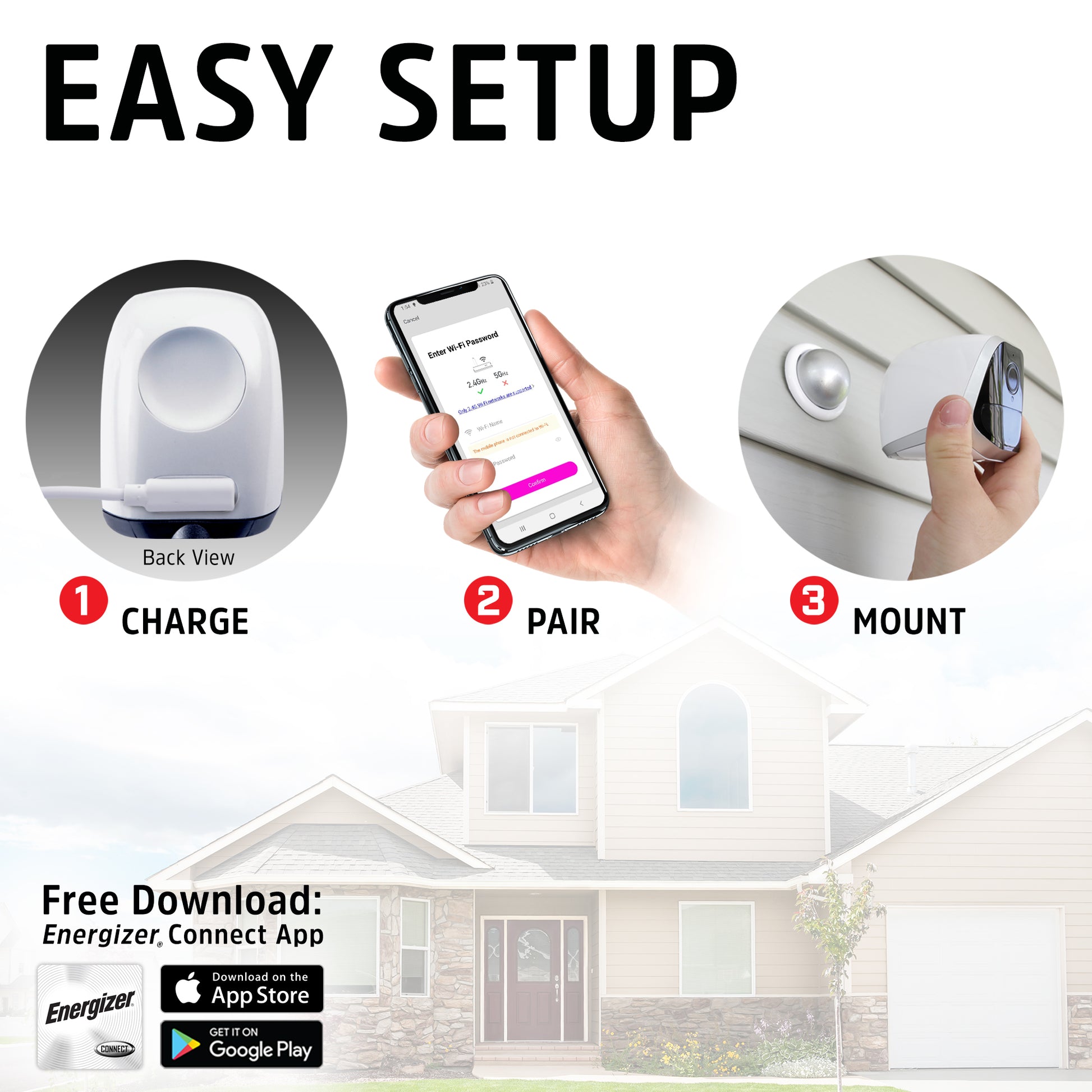 - Control your camera from anywhere: Download the Energizer® Connect app to view the live video or footage and operate your camera remotely for added peace of mind. Connect the camera to Amazon Alexa or Google Home for easy voice control, so you can keep your hands free around the house.