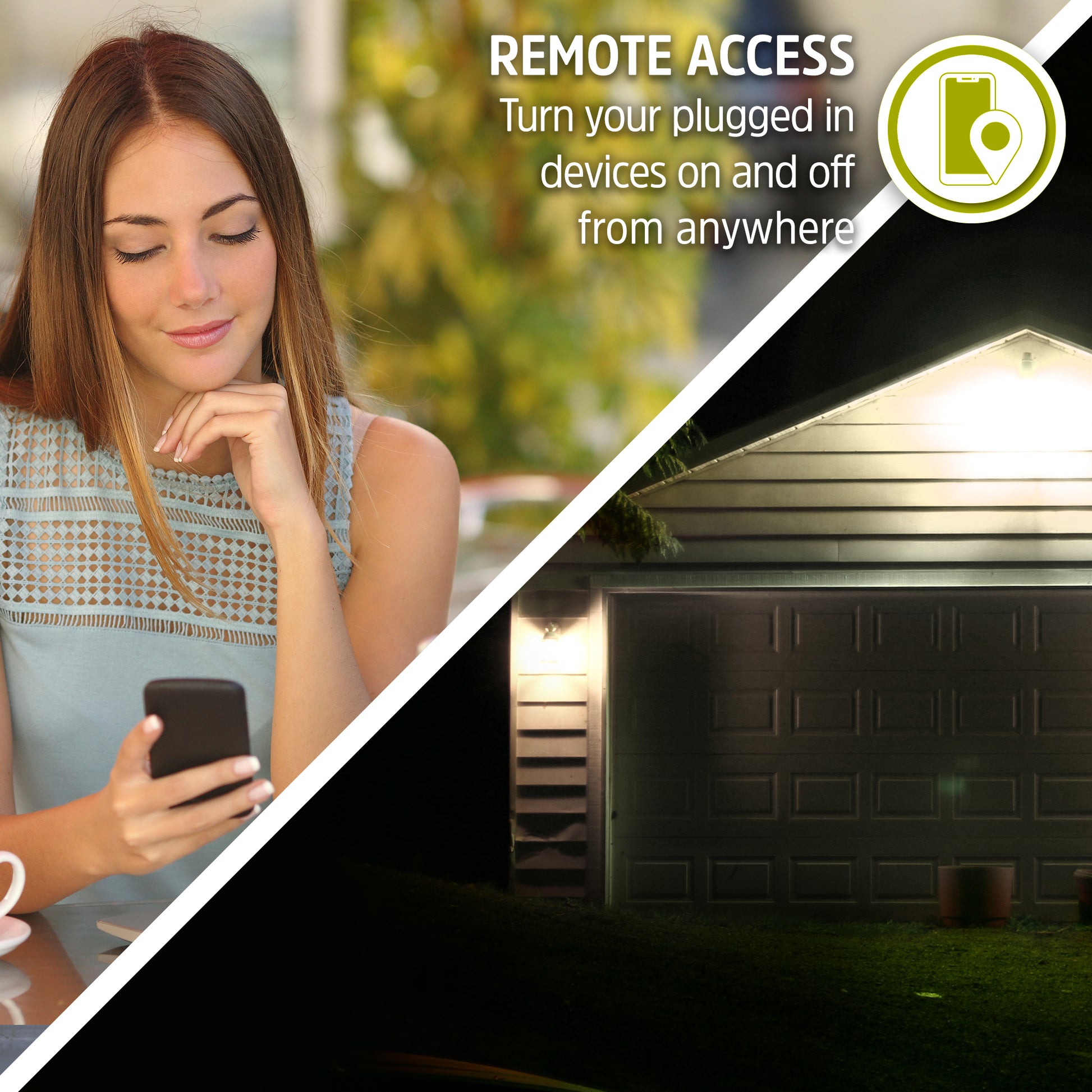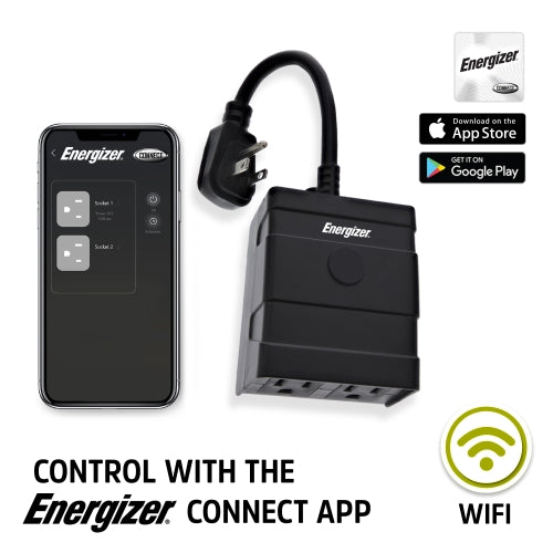 - Turn your equipment on and off from anywhere: Forgot to turn off your outdoor lights before you left the house? No problem! Download the Energizer® Connect app to operate the plug remotely and turn on/off your plugged-in devices from anywhere. The plug is also compatible with Amazon Alexa, Hey Google, and Siri for convenient voice control.