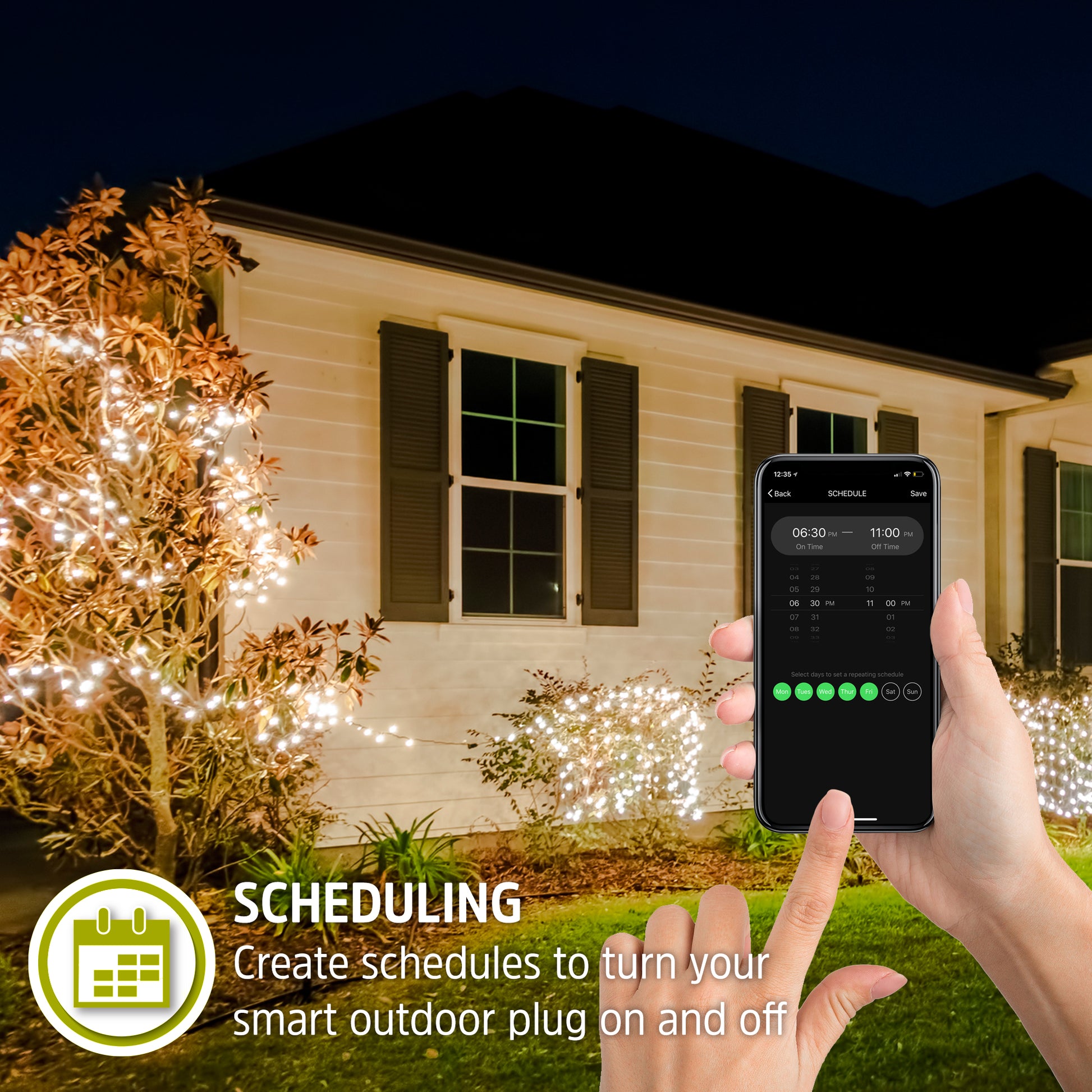 Upgrade your outdoor outlet with the Energizer® Connect Smart Wi-Fi Outdoor Plug and experience superior power with cutting-edge features: